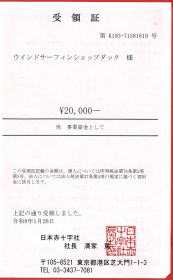 ※受領書発行まで時間が掛かるそうなので、届き次第、追加掲載致します。