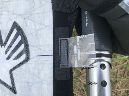 ダウンのゲージはセイルにプリントされている印を目安にMEDの位置をだして使用しています。